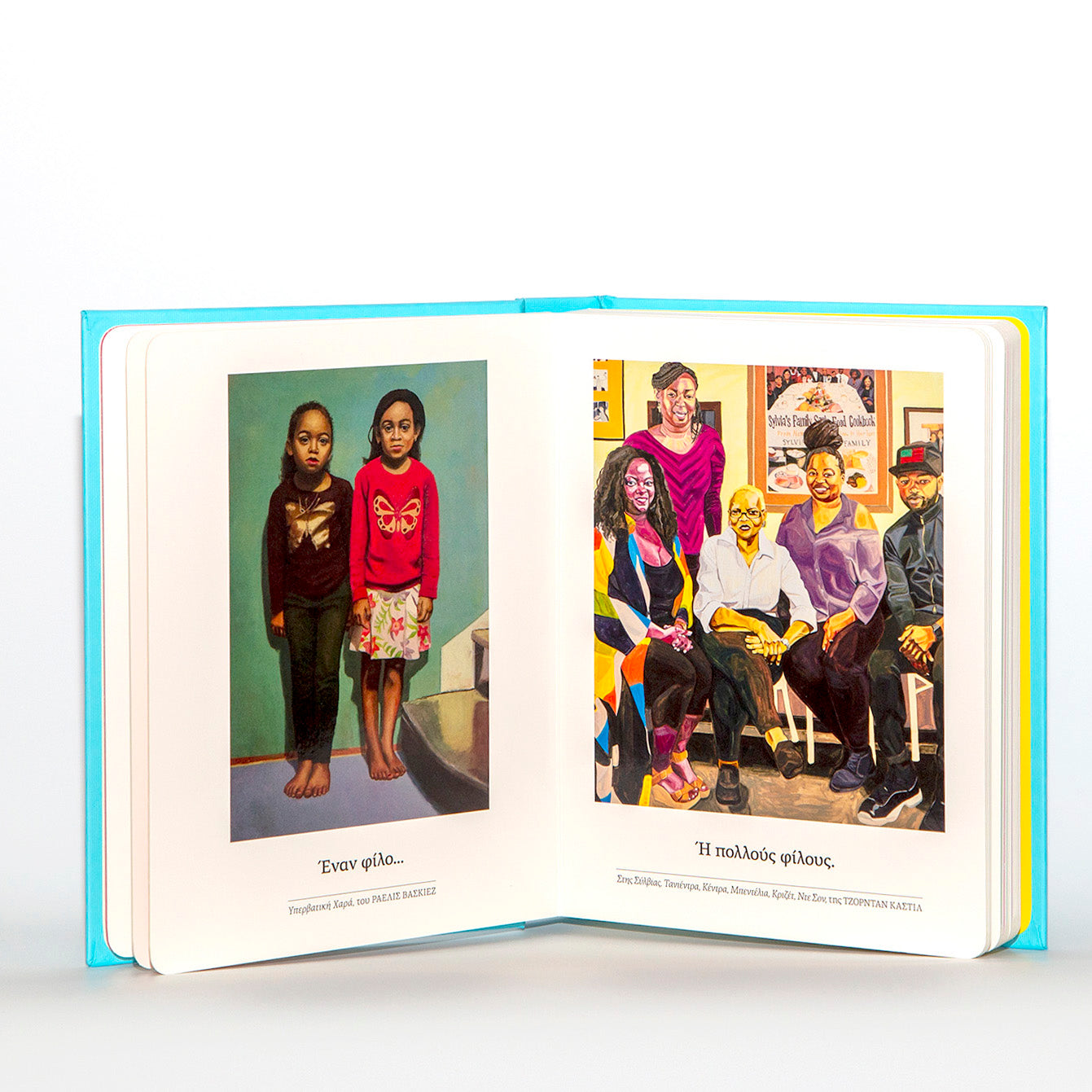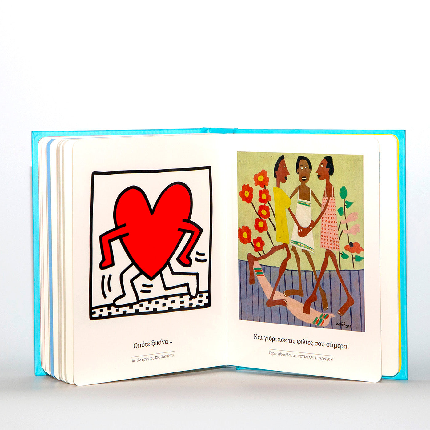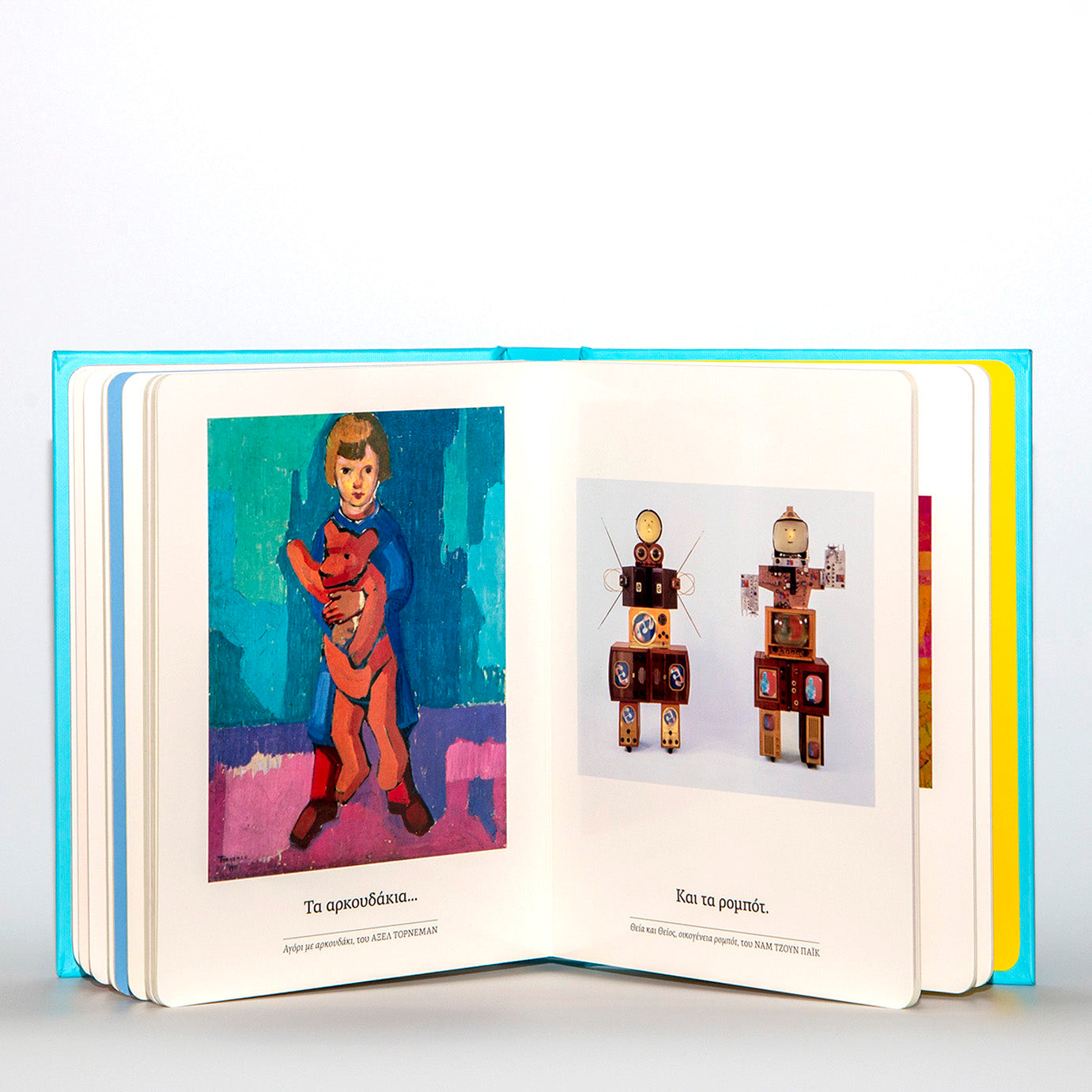 Με εξώφυλλο σε ζωηρά χρώματα και ανθεκτικές, πολύχρωμες σελίδες, συνδυάζει πάνω από 30 διάσημα έργα τέχνης με τρυφερό κείμενο, απεικονίζοντας τα συναισθήματα που μπορεί να εμπνεύσει, από τη χαρά και τη δύναμη μέχρι τη συντροφικότητα.