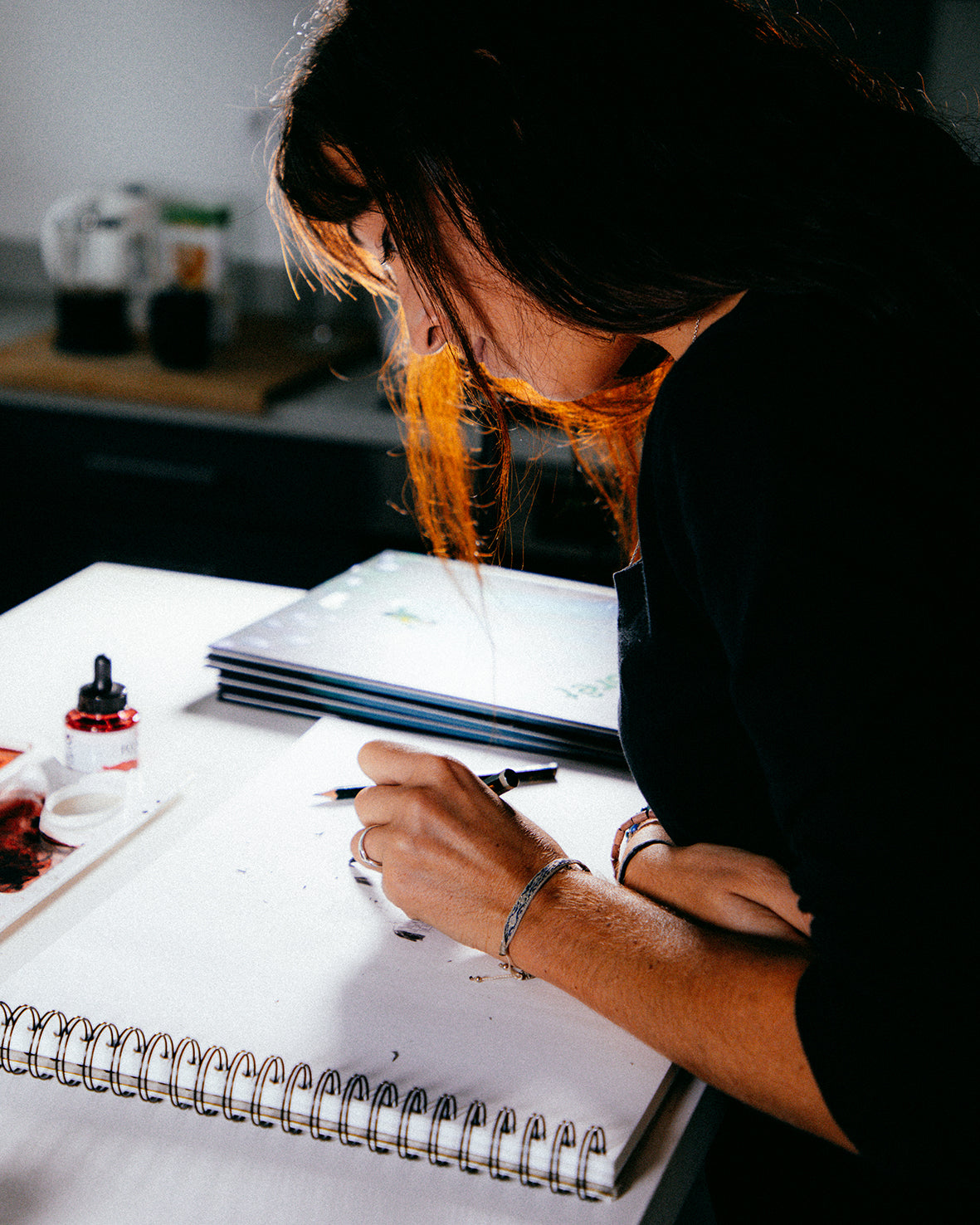 Ζει στους πρόποδες των βουνών, όπου εικονογραφεί παιδικά βιβλία και κόμικς, αντλώντας έμπνευση τόσο από τη φύση όσο και από τους ανθρώπους που την περιβάλλουν, για να δώσει ζωή και νόημα στα σχέδιά της.